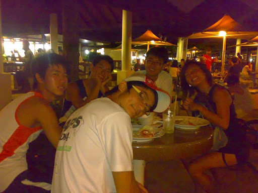 We rented bikes n den cycled around n was soon joined by Jeremy. After cycling for abit we had our dinner at laguna. Me, Jia Jun, Collin n Jeremy had a scrumpuulous meal consisting of stingray, sotong, fried oysters, fried chicken wings, sambal kang kong and the trusty 'ol sugar cane. As u can see on the pic below...the food was simply so wonderful that we ate up everything without leaving any behind (: