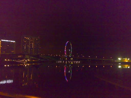 We den headed to Clark Quay area to have a look at the clubs, hoping maybe to catch a view of our captain and other sprint seniors hu might possibly be there! Then we headed back towards Esplanade there. On the way back could catch a view of the ferris wheel! The night view of it is simply amazing what with lights and all. But the colour combination apparently makes it look similar to a KTV lounge!