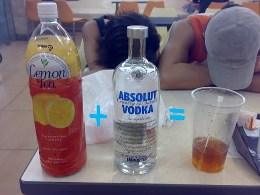We den headed back to Kallang and on to geylang area. By right wanted to go there to eat tau hui n dough fritters but they can't find it so they gave up quite easily since most were quite tired oredi. After stopping by at a 7-11 for quite awhile, we den headed back to East Coast Park. Finally reached back n we immediately headed to the trusty 'ol McDonalds. Chilled there for the rest of the morning. Finally opened the bottle of absolute vodka that Collin brought.
