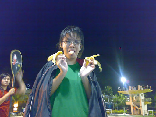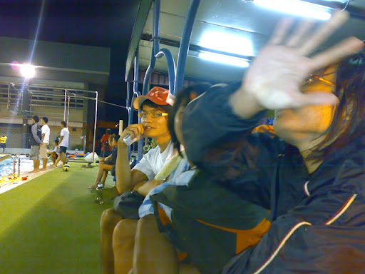 I guess we cycled for abt half an hour. The roads outside NTU were very eerie n the roads inside were even worse. Cos there are so "Allah-Damnned" many upslopes! Saw the polo ppl at the swimming pool! Guess they were surprised to see us n didn't expect us, their loyal supporters to turn up (: Anyway when we got there, i felt very hot since we had jus chionged up a slope to get the swimmng pool there. I told that to one of the polo guys n they were like hot my ass lah! In fact u could say that 90% of the ppl there were shivering n feeling cold. Cos the players after playing will be wet. Den they will have to get out of the pool into the chilling night winds! And it was damn funny to see Markus shiver like crazy!!!! Muahhaha