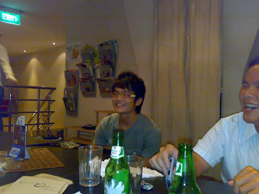 AGM was damn fun. Ok maybe not since i had to emcee. Shouted like hell for lotsa stupid stuff n now i lost a little of my voice. Totally wasted my 10 bucks as i did not get to eat my dinner since all the food was gone... rahhr!!! After AGM went with the sprinters to Essential Brews at Holland Village. Damn nice place to chill at though the stuff there is quite ex. Drank beer n Chivas which i brought. Played 7 up with everyone n loser had to drink the mixture of Chivas n beer. Slowly everyone left leaving me, Collin, Daphne, Jia Jun, Chin Koon n Dennis. So we left around 1++ n went to 7-11. Those stupid seniors of mine refused to let me buy more stuff to drink so dey purposely shout out loud that i was underaged...-__- Anyway cabbed home with Daphne, Dennis n Chin Koon. N i made a discovery that Dennis oso from New Town!!!